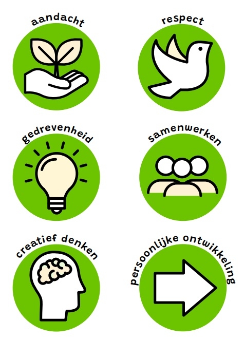 We geloven dat het omgaan met elkaar gebaseerd is op de kernwaarden respect, aandacht en samenwerken.